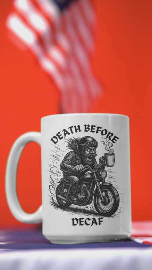 Biker Coffee Mugs, Fun Motorcycle Decaf Cup, Gifts for Dad, Cafe Decor, Gifts for Riders, Funny Coffee Cup